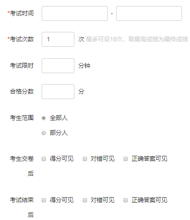 -设置 时间 : 可以设定起始时间,也能限定整场考试的时间