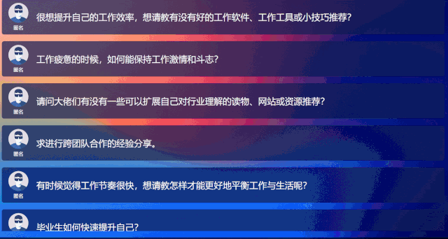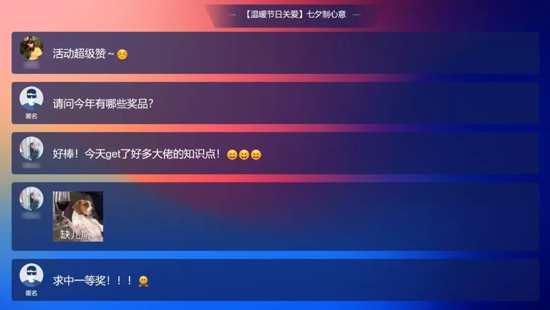 开启【留言上墙】功能后,活动大屏幕将轮播员工的留言内容,管理员可以随时删除留言。管理员还可以在后台配置是否 允许员工 【 匿名留言】 。
