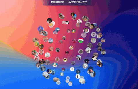 开启 【签到上墙】 功能后 , 可以将已签到人员的头像组成3D动画效果,可分别切换成矩阵、地球、圆柱等多种效果,签到人数不受限制~