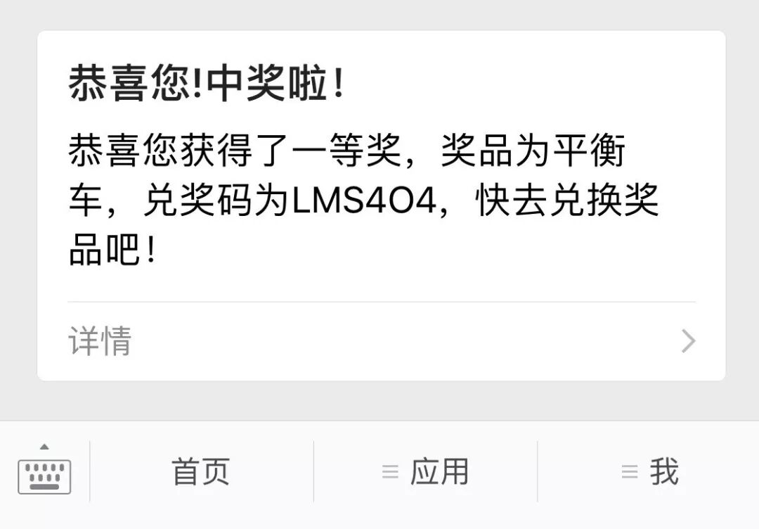 中奖后,还可以将中奖结果 实时推送给员工 :